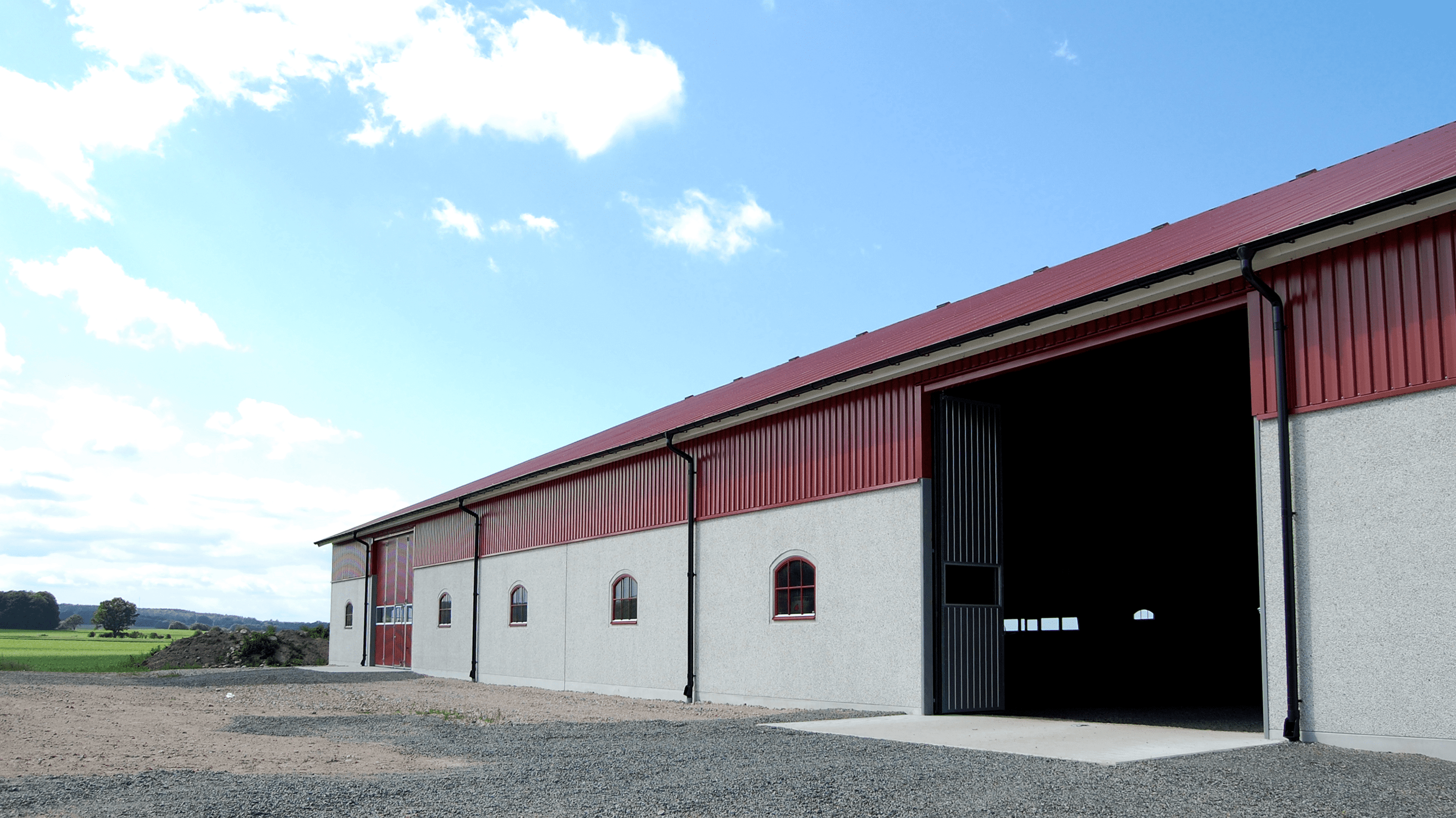 Våra hallösningar är helt anpassat efter dina behov och vi arbetar med hallstorlekar från ca 100m² och upp till över 10 000m². Byggnaderna kan levereras med stora spännvidder och i stort sett obegränsade längder. Ta gärna en titt på några av våra levererade lantbruksbyggnader.