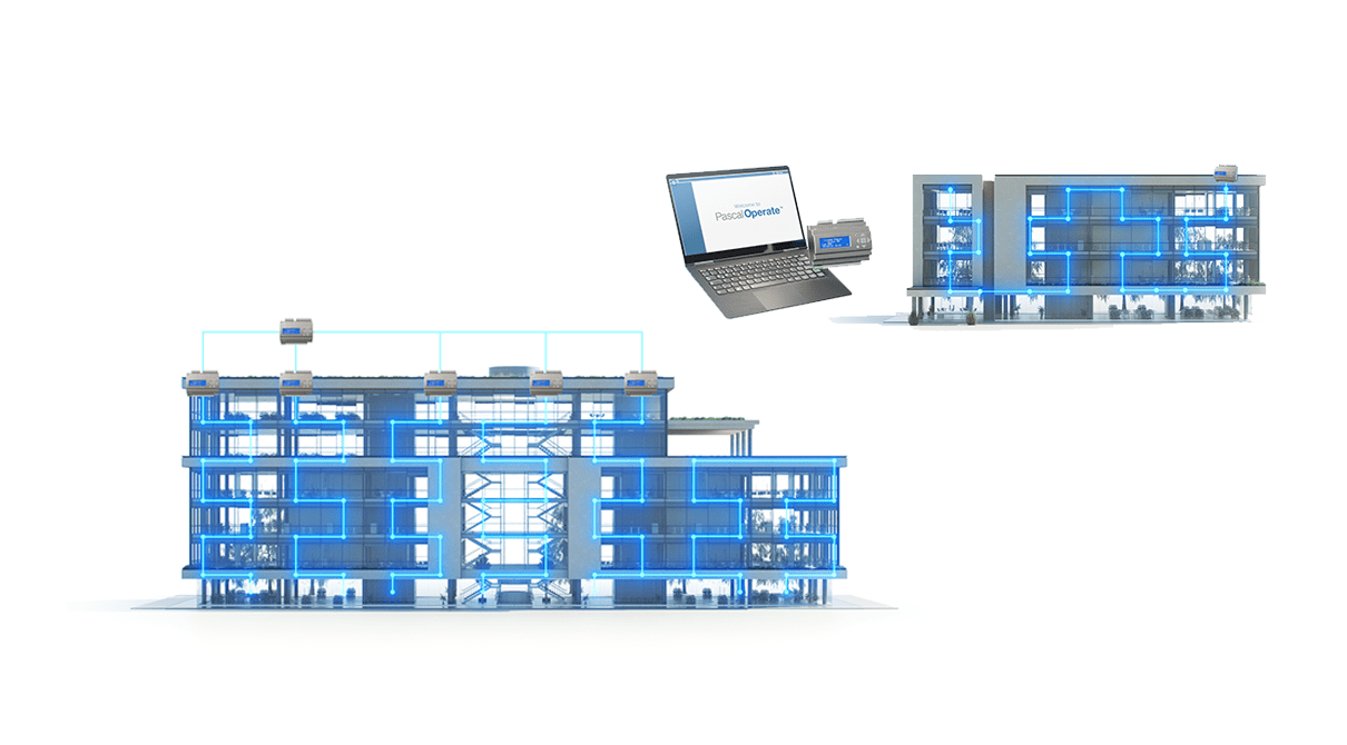 Pascal System Management kan anslutas till Lindab Regula och kan monteras i ett rum, i små och stora fastigheter, i endast en del av en byggnad eller till och med i stora anläggningar som sjukhus, hotell och skolor.
