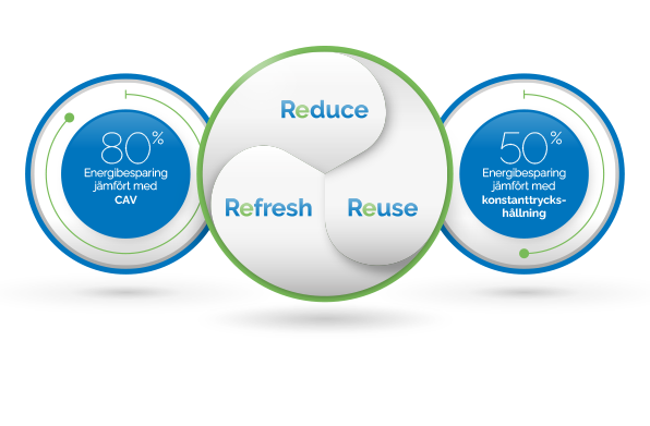 Lägre systemtryck och minskad energianvändning. - Jämn och trygg komfort året runt