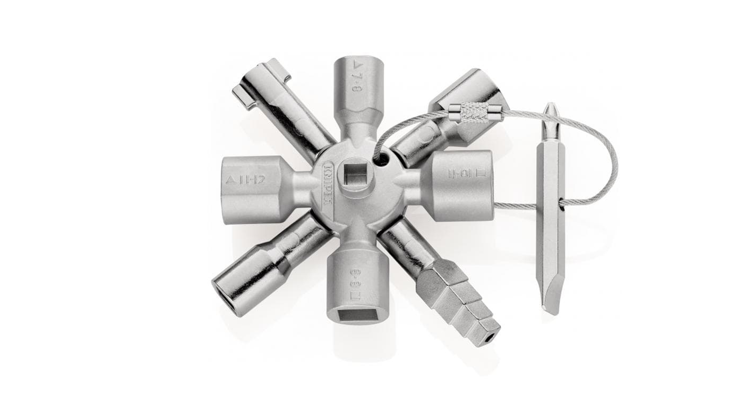 Multifunktionell nyckel för manövrering av stängningssystem inom områdena byggnadsteknik (vvs, klimat- och ventilationsteknik, elteknik), gas- och vattenförsörjning och avstängningssystem