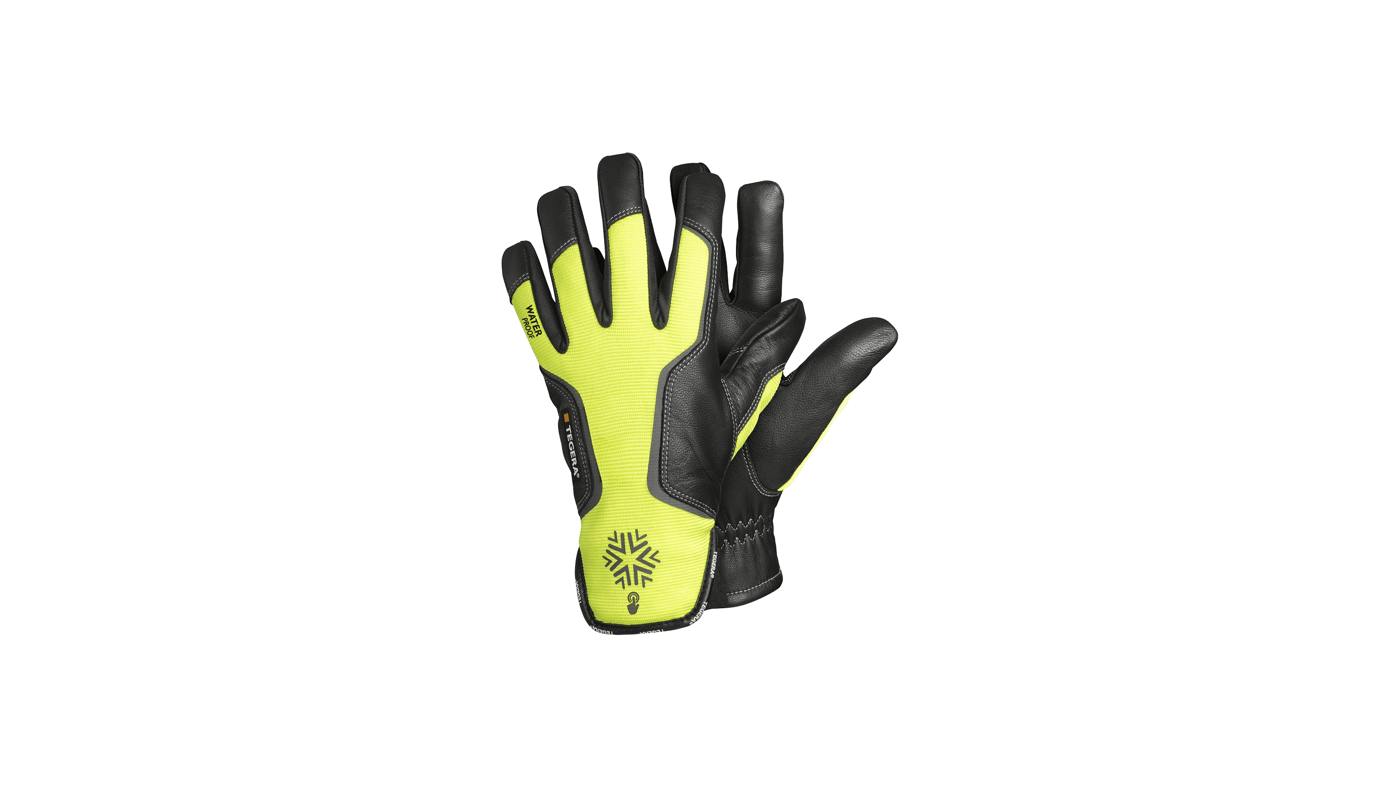 TEGERA® 7798, Läderhandske, varmfodrad, 0,7 mm getnarv av högsta kvalitet, spandex, fleece, Thinsulate™ 40g, Cat. II, förstärkt pekfinger, varselfärg, vattentät, reflex, för allroundarbeten.