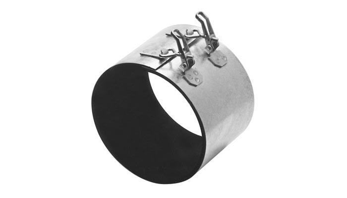 Demonterbart svep tillverkat av galvaniserad plåt. Insidan av svepet är beklätt med en tjock cellgummipackning av EPDM gummi.
