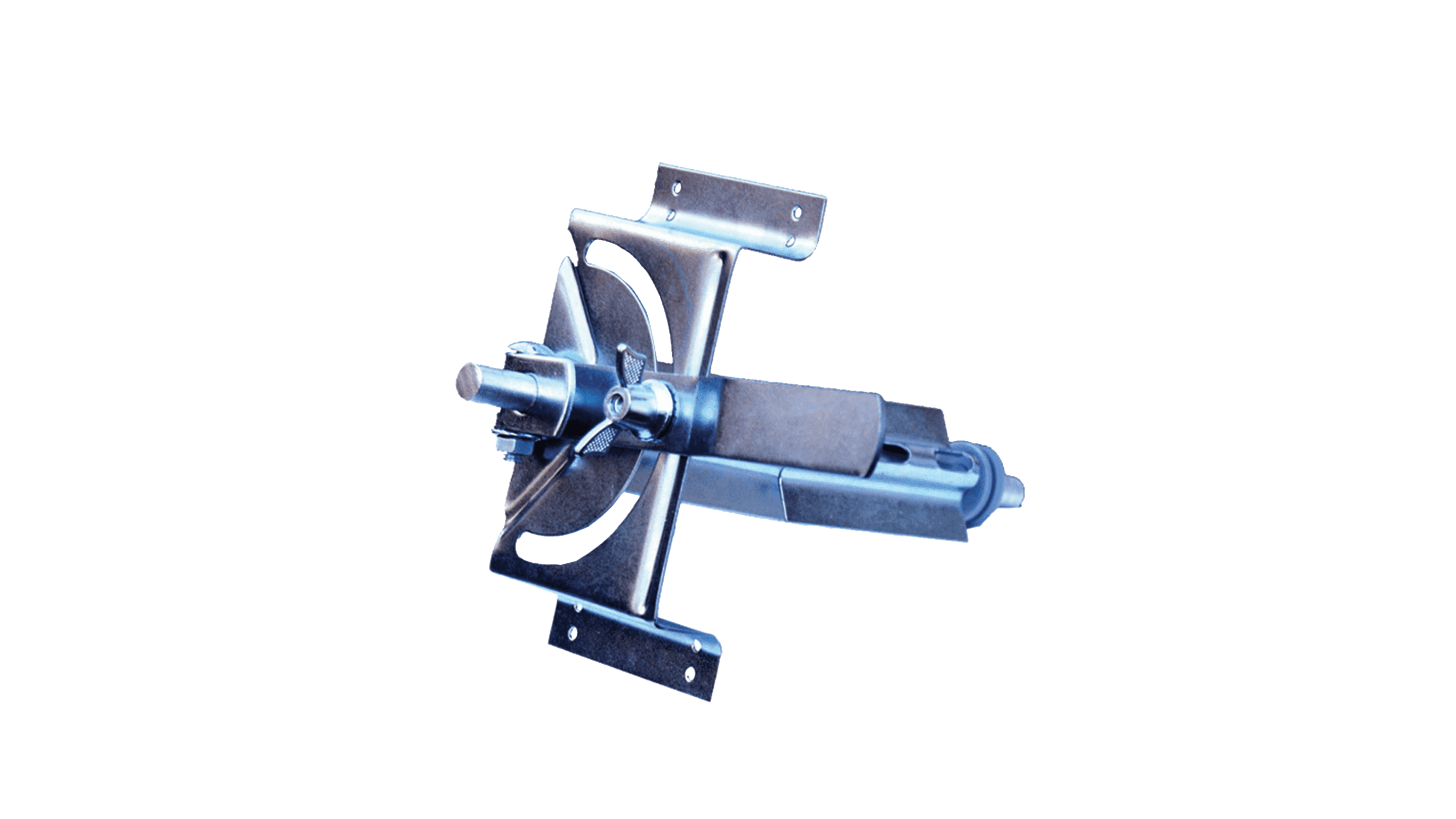 Handtag med axel och infästningsbrickor för att kunna tillverka ett eget reglerbart spjäll.